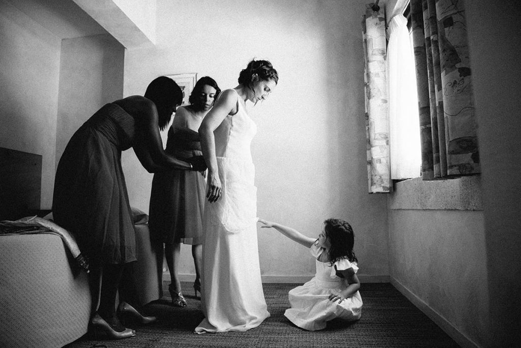 Capturer des images de mariage en noir et blanc, c’est jouer avec une palette entière de gris, des plus clairs, presque blancs au plus foncés, presque noirs. Ce sont ces nuances de teintes et l’apport de contraste qui vont mettre l’accent sur un sujet et magnifier la photo finale