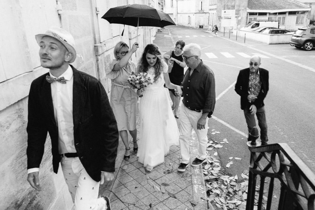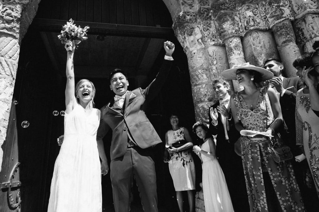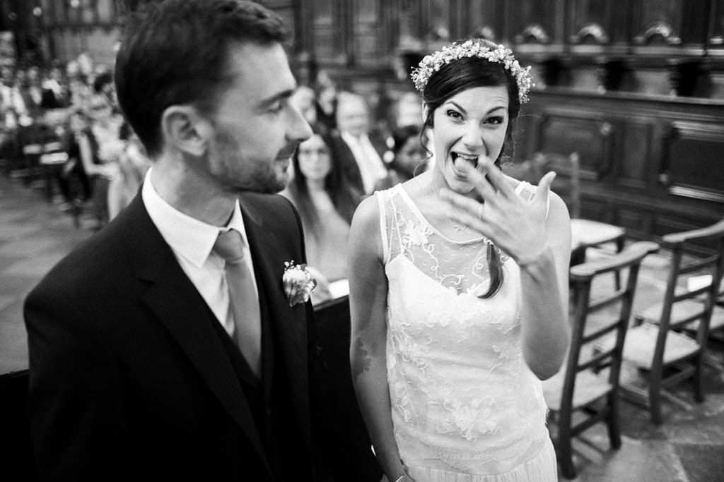 En se privant de la couleur sur une photo de mariage, on se concentre sur l’essentiel. Quand les mariés sont envahis par l’émotion, l’important n’est pas de restituer la couleur du ciel mais plutôt de faire ressortir l’ambiance particulière du moment.